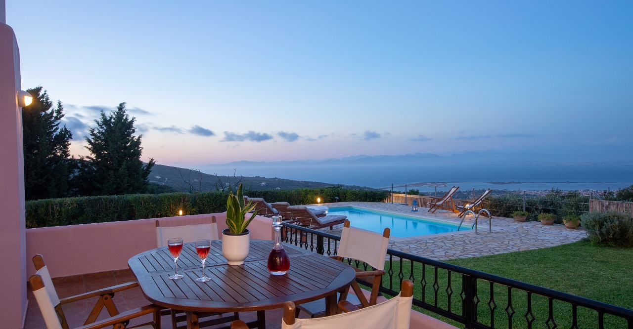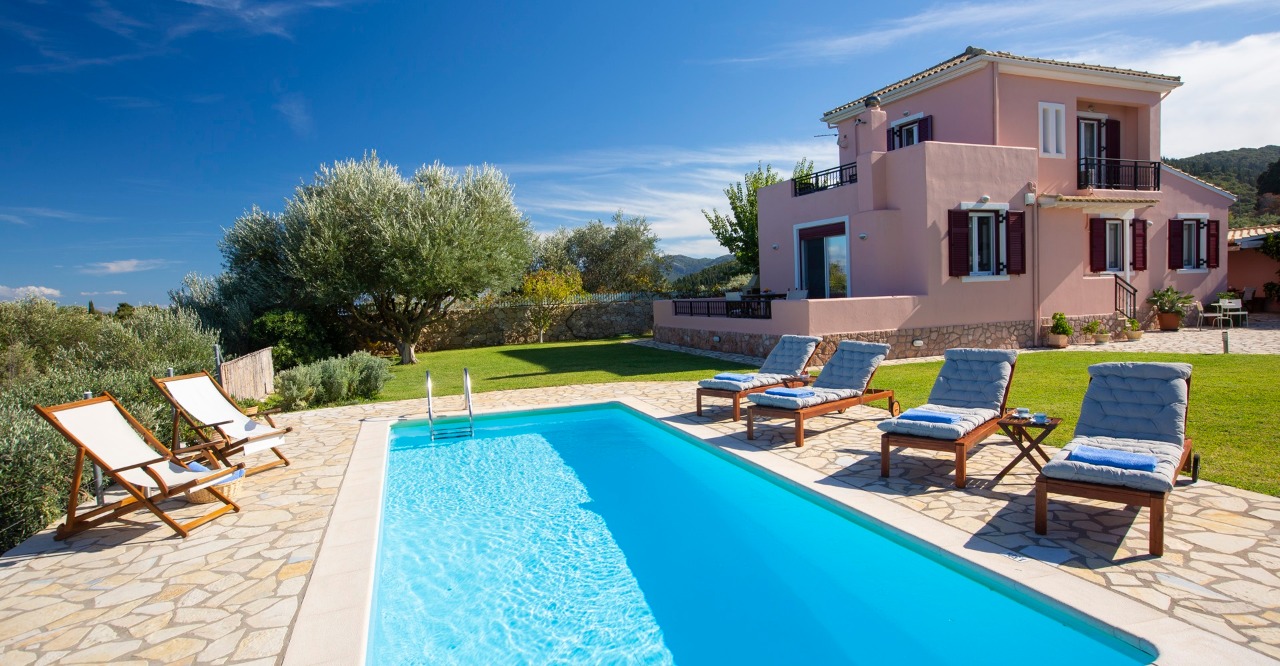 Feel the luxury of sitting comfortably near by the private outdoor pool with a glass of wine while marveling at the iconic Ionian sunset, enjoying the calmness together with the smells of nature.